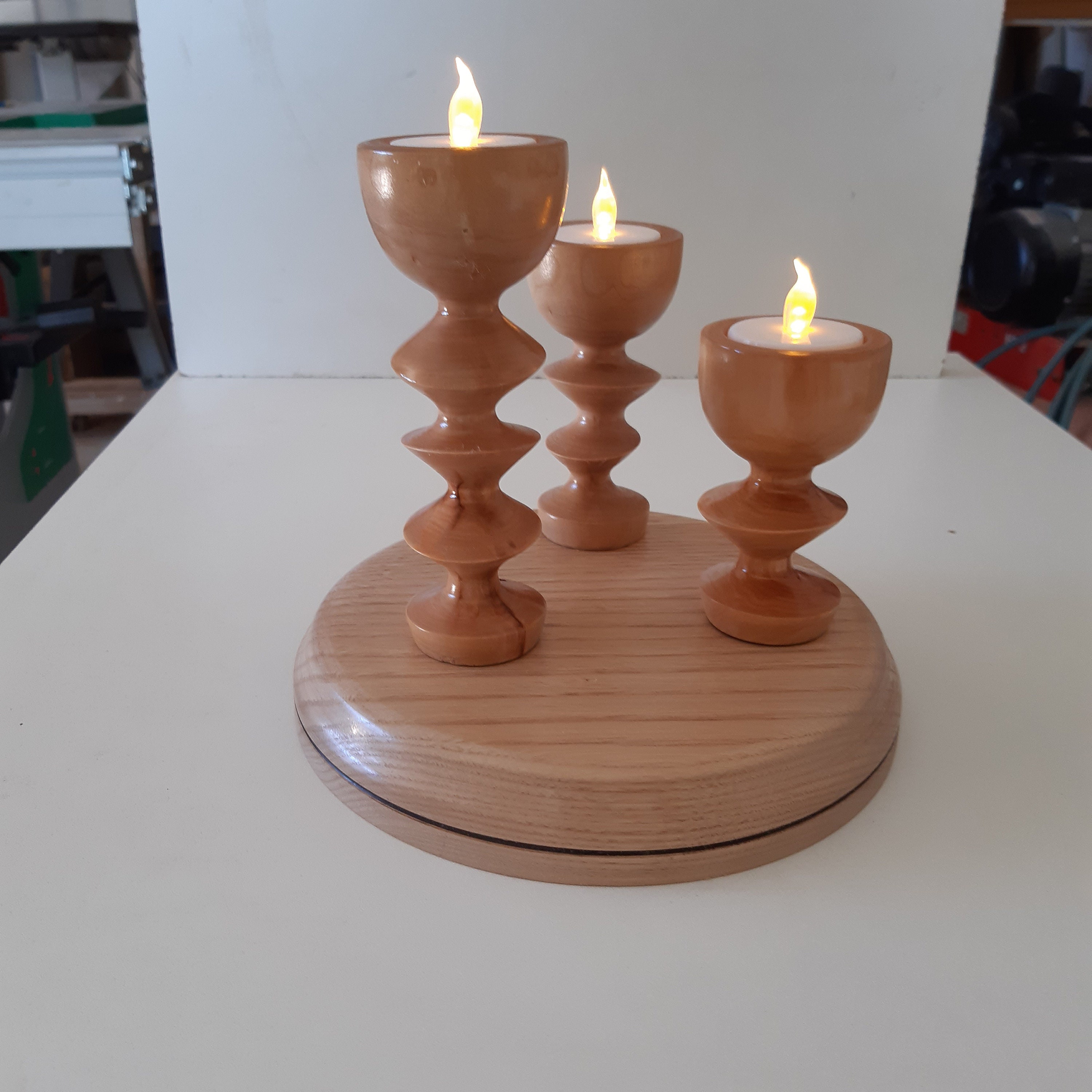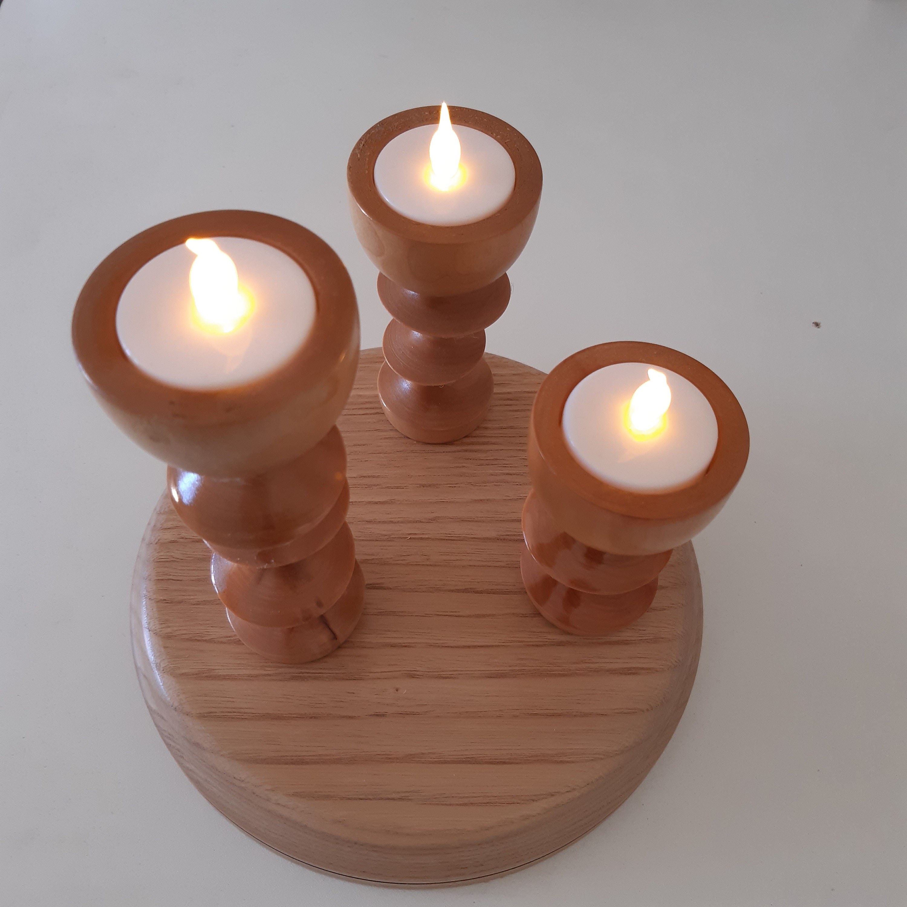 Cylindrical candle holder candlestick turned with chestnut wood holm oak wood candle holder delivered with battery-operated candle.