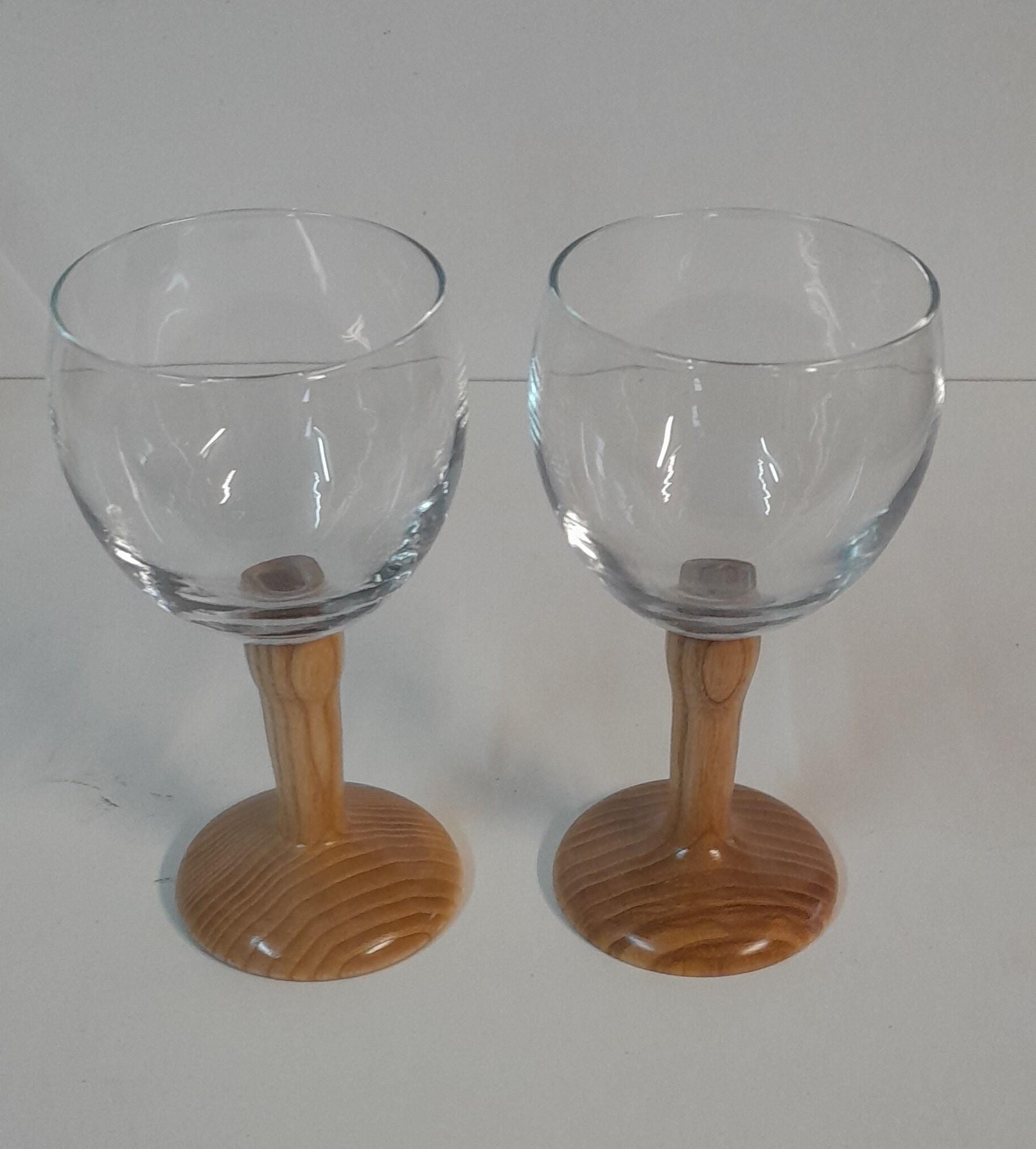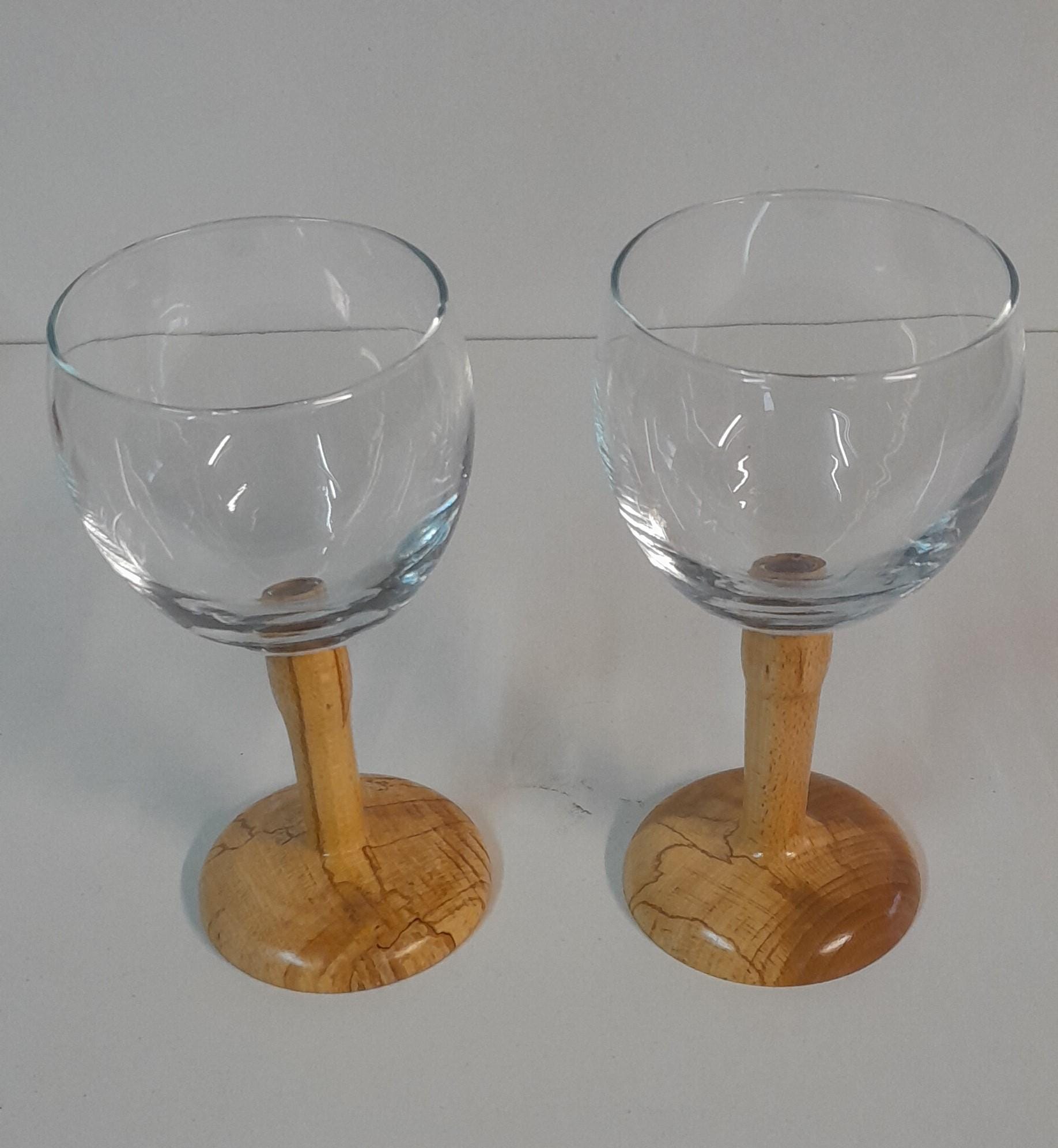 Wine glass with a wooden stem, either beech or spalted birch, capacity 19.5 cl, height 14 cm